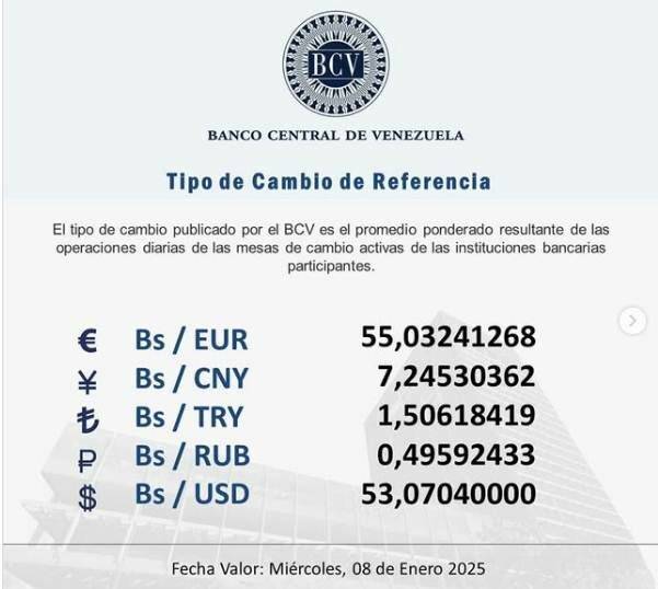 El Banco Central de Venezuela (BCV) ha anunciado que, para el miércoles 8 de enero, el precio del dólar oficial experimentó un ligero incremento tras el cierre de la jornada del martes 7 de enero. La tasa del dólar oficial se ha establecido en 53,07 bolívares, según la información proporcionada por la máxima autoridad bancaria del país.
