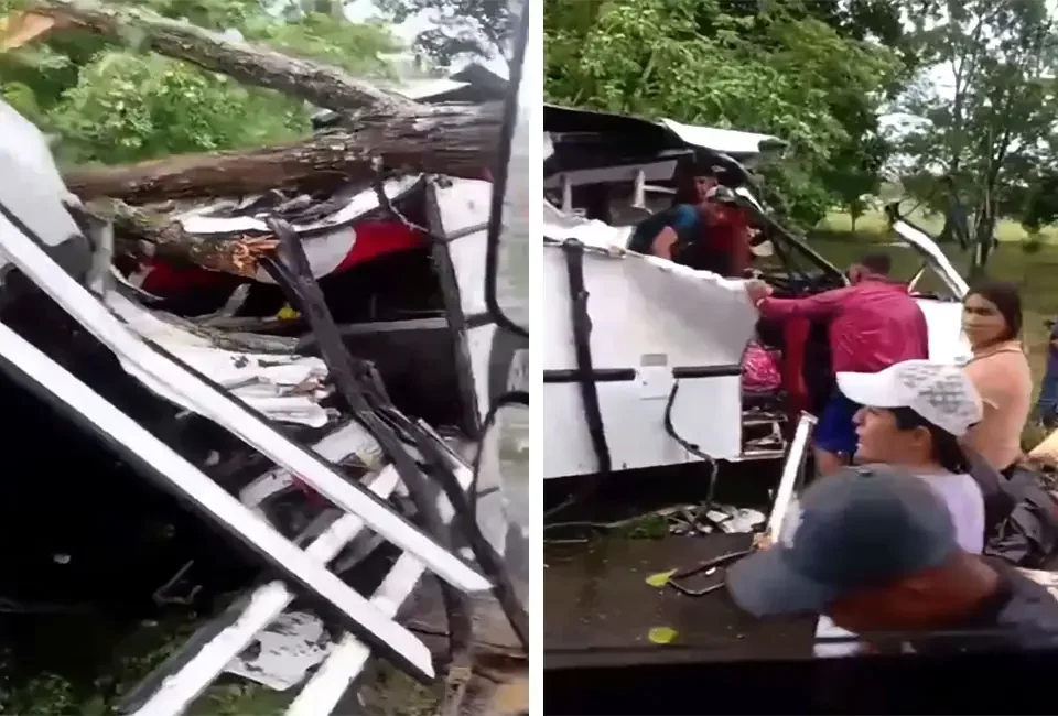 El accidente se produjo a las 2:35 am en la Troncal 019 de Táchira. Las causas del desplome del árbol aún están bajo investigación, pero se presume que ocurrió mientras el autobús estaba en movimiento. Imágenes compartidas en redes sociales muestran la magnitud de los daños sufridos por el vehículo.