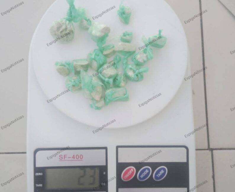 El alijo de supuesta droga incautada por la comisión policial arrojó un peso de 23 gramos.