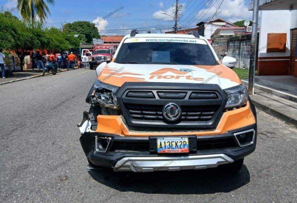 Portuguesa.– Una pareja que se desplazaba en una motocicleta resultó herida al colisionar contra una camioneta, hecho sucedido este martes 19 de agosto en el corredor vial de la carrera 11 con calle 18 del barrio Cementerio de Guanare.
