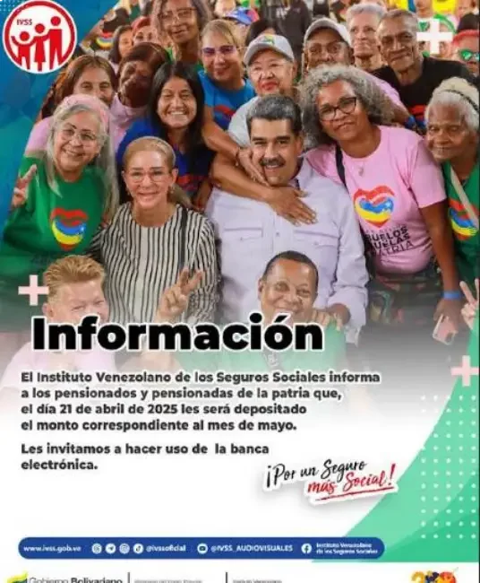 El comunicado dirigido a los pensionados y pensionadas de la patria especifica: “El lunes 21 de abril se efectuará el pago de pensión, correspondiente al mes de mayo”. La organización, que gestiona una población aproximada de 5,5 millones de pensionados y jubilados, ha instado a los beneficiarios a utilizar la banca electrónica para recibir este pago.