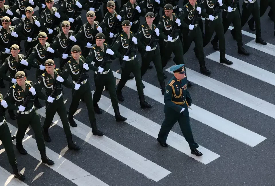 Militares rusos marchan en el Día de la Victoria, que conmemora el 80º aniversario de la victoria sobre la Alemania nazi en la Segunda Guerra Mundial, en el centro de Moscú, este viernes.