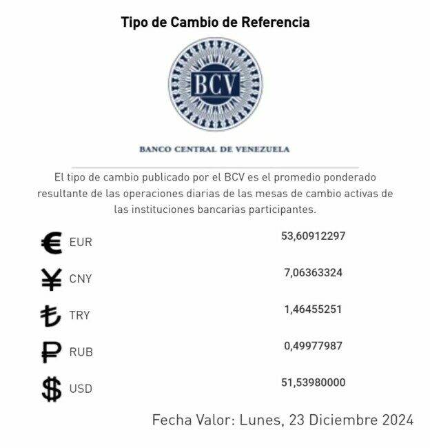 El Banco Central de Venezuela (BCV) ha anunciado que la tasa oficial del dólar para hoy es de 51,53 bolívares, mientras que el Monitor Dólar, una herramienta que sigue el mercado paralelo, informa una cotización de 64,09 bolívares. Esta diferencia significativa entre ambos valores continúa planteando un entorno económico complejo en el país.